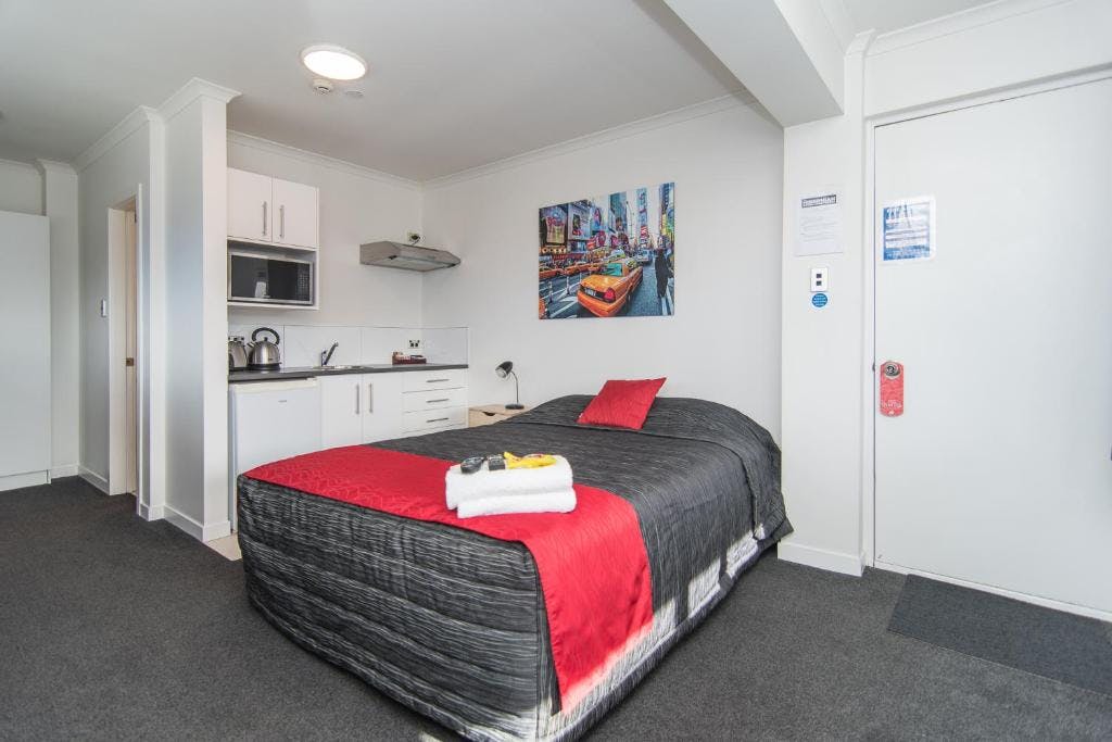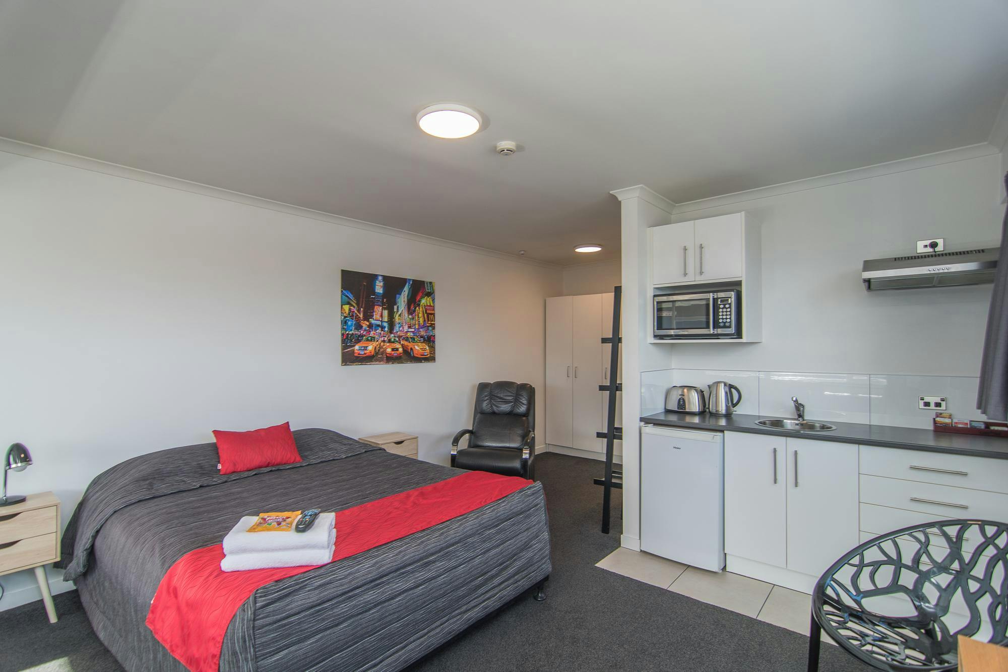 Perfect for couples or someone wanting a slightly bigger bed, the studio comes with one queen bed, a basic kitchenette, a wardrobe, as well as a full ensuite bathroom boasting a shower with amazing heat and water pressure plus a hairdryer and iron are supplied.